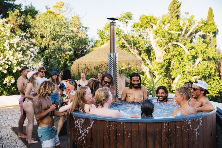 Zusätzlich kannst du zwei Mal pro Woche (immer donnerstags und sonntags) in der campeigenen Sauna und dem Hot Tub relaxen. Seit März 2025 steht den Gästen der Surf Mansion Lagos außerdem ein Eisbad zur Verfügung